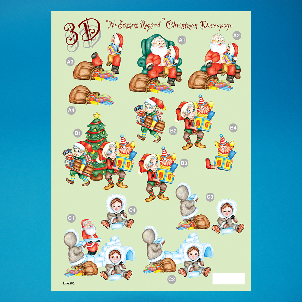 Pack of 10 – A4 sheets Christmas Santa’s Elves die-cut decoupage