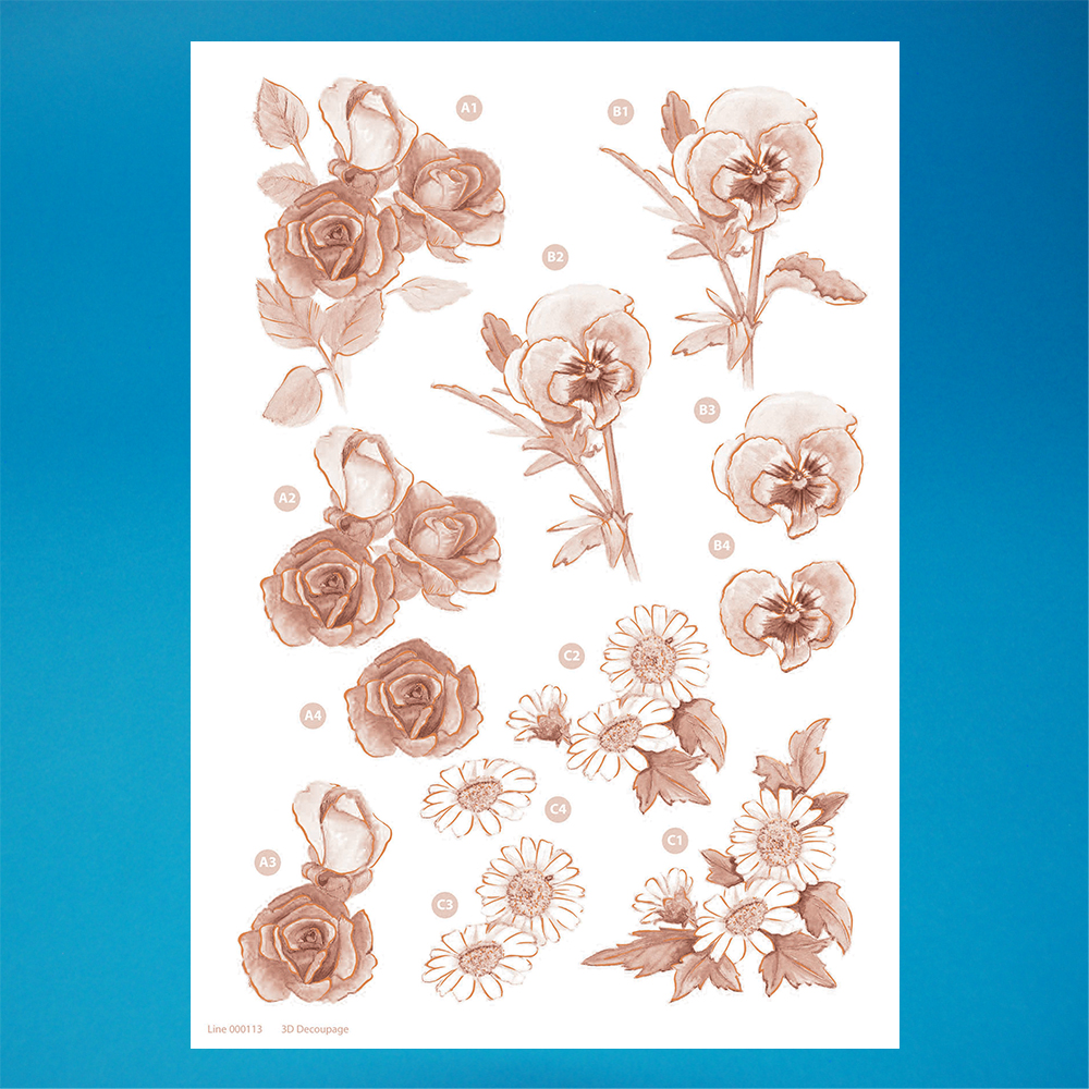 Home / Shop / No Scissors Required 3D Die-Cut Decoupage / Floral Decoupage / Line F 113c. Floral Sepia Decoupage