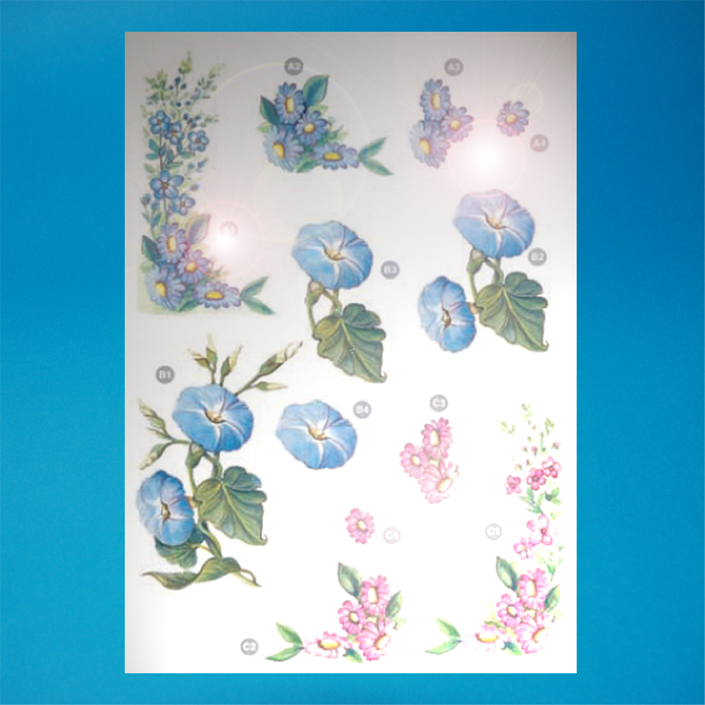 Pack of 10 – A4 sheets of floral reflections decoupage.
