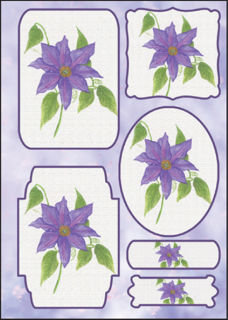 Pack of 10 A4 sheets of Elegant Element flowers, Die Cut and with foiled borders and highlights