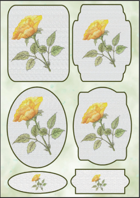 Pack of 10 A4 sheets of Elegant Element flowers, Die Cut and with foiled borders and highlights